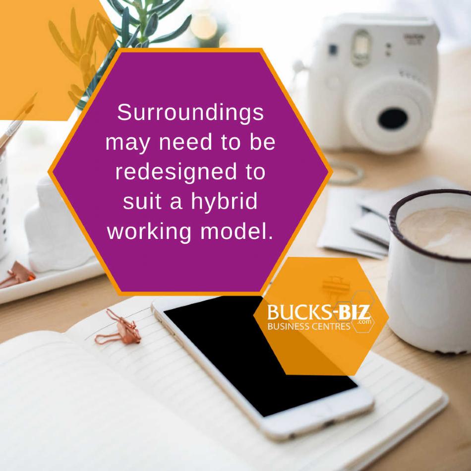 Surroundings might need to be redesigned to suit a hybrid working model, with fewer permanent desks, more collaboration spaces, and more sophisticated technology and security.